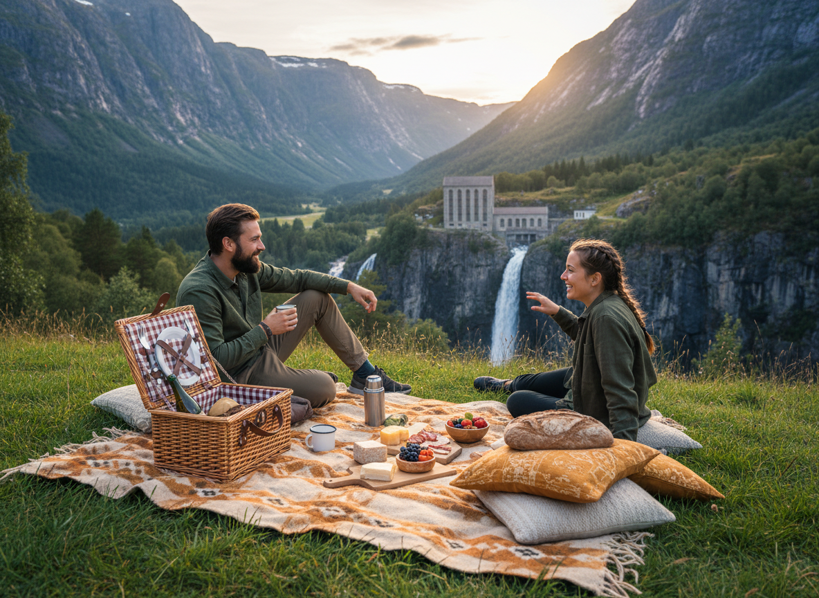Nachmittag: Packen Sie ein Picknick ein, um es am Fluss zu genießen; spektakuläre Ausblicke sind garantiert. am Vemork Fluss (1,5 Stunden)