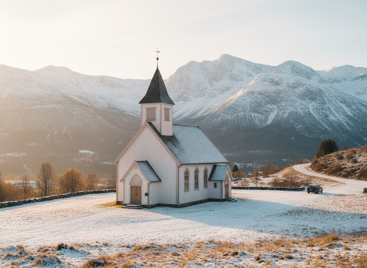 Morgen: Packen Sie Ihre Sachen und checken Sie aus; halten Sie auf dem Weg zur historischen Rjukan Kirche an. an der Rjukan Kirche (1 Stunde)