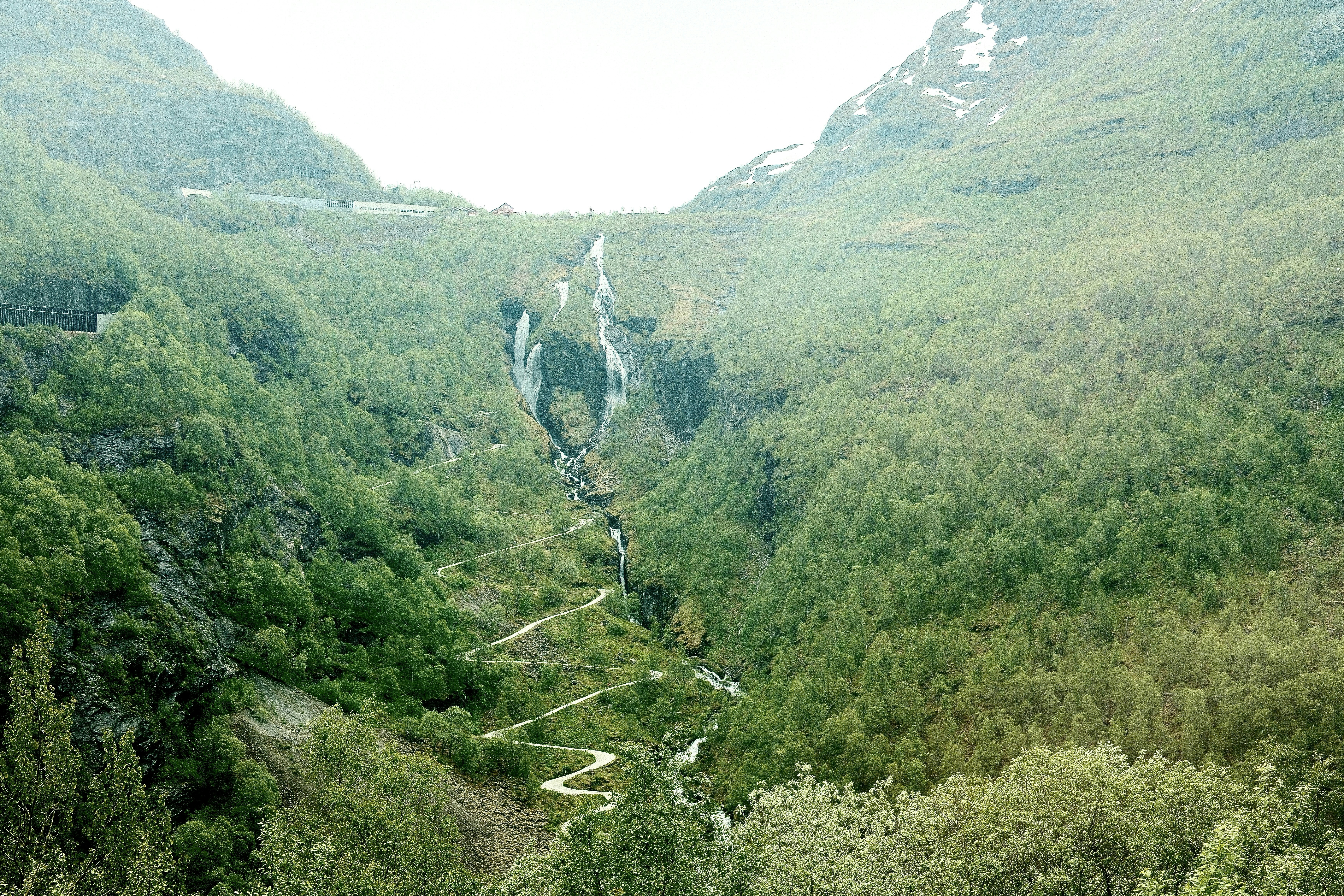 - Ferrocarril de Flåm: A menudo considerado uno de los viajes en tren más escénicos del mundo, el Ferrocarril de Flåm desciende desde la estación de montaña de Myrdal hasta el encantador pueblo de Flåm, situado en la cabecera del fiordo de Aurlandsfjord. Este viaje de 20 kilómetros está repleto de dramáticas cascadas, montañas empinadas y vistas impresionantes. El trayecto en tren dura aproximadamente 1 hora y es una visita obligada para los fotógrafos.