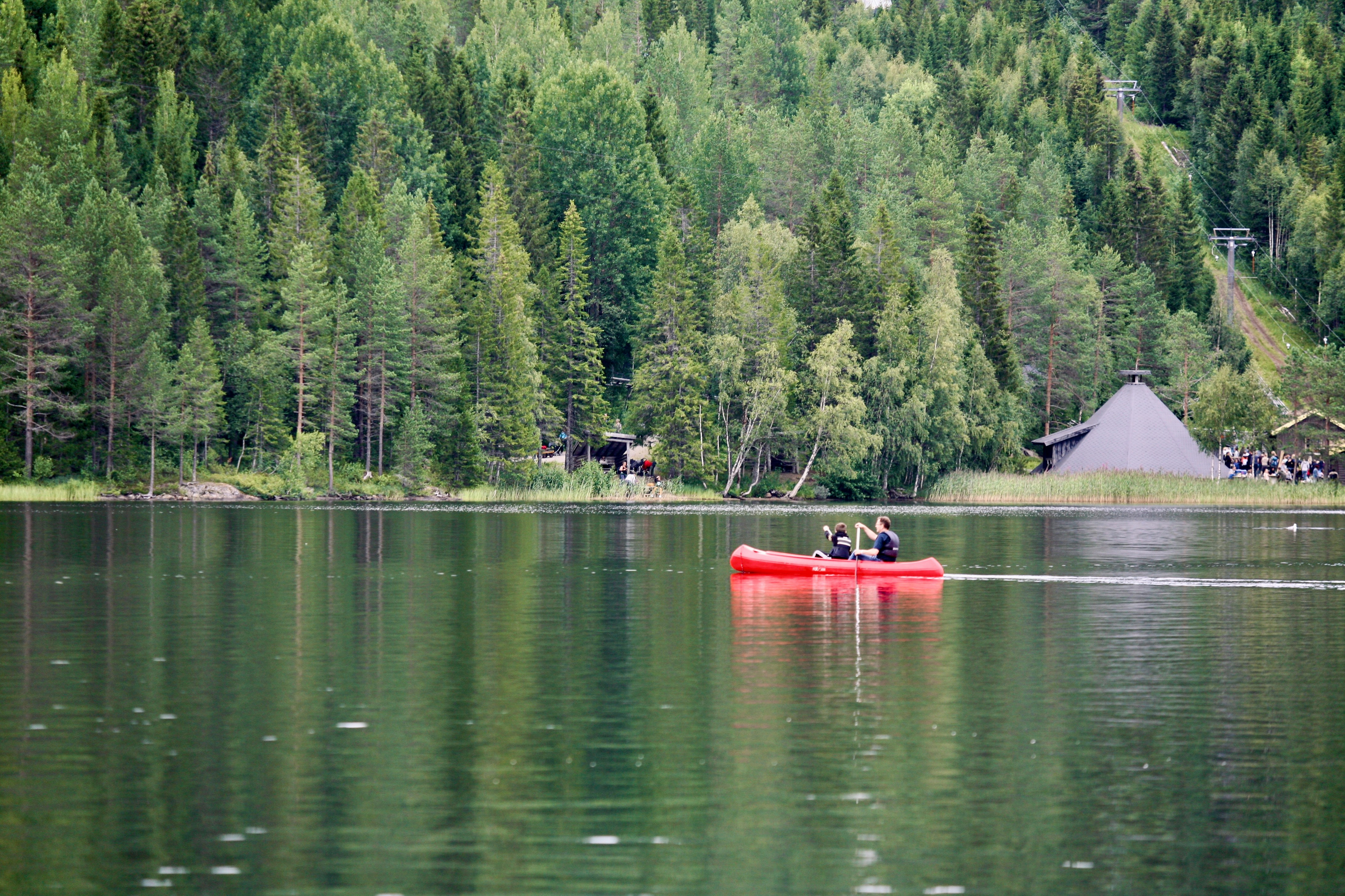 Opplev stillheten i Norges skoger mens du padler på en pittoresk innsjø omfavnet av naturen.
